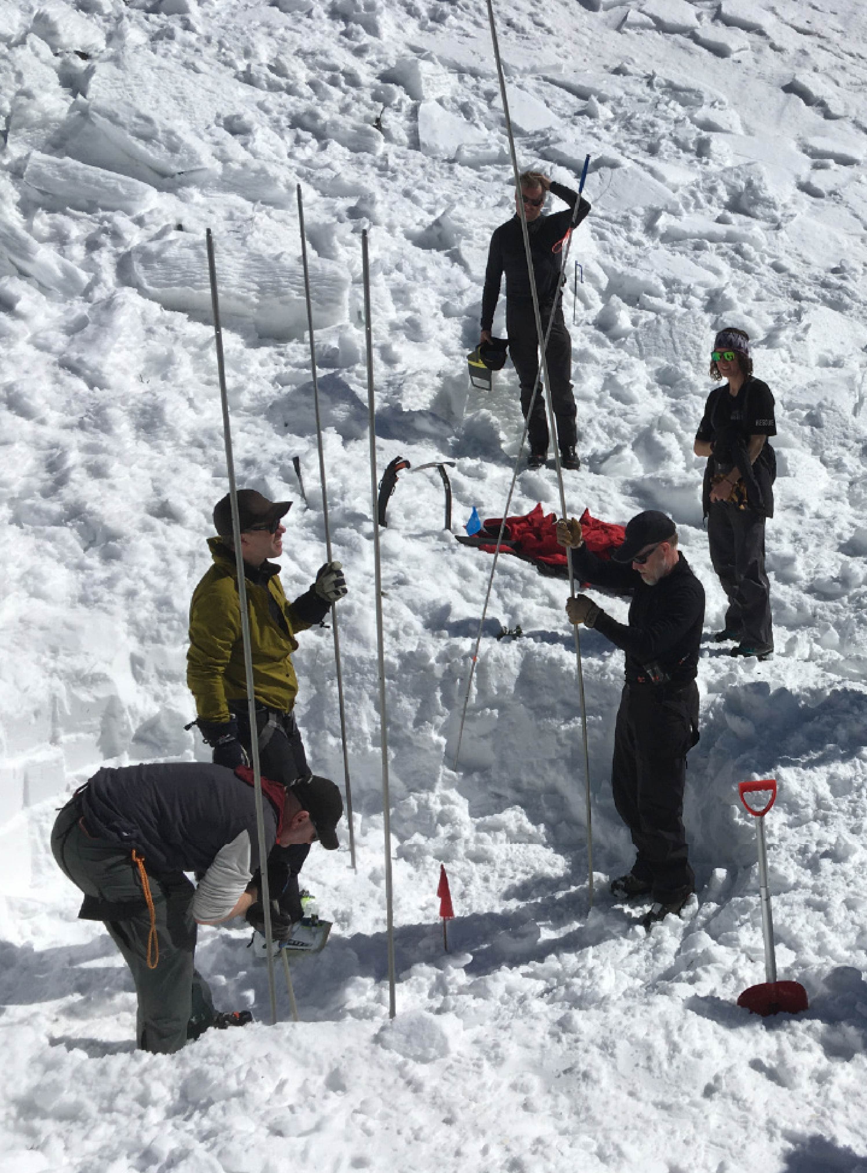 In addition to individual certifications, LBSAR trains in organized avalanche rescue (AvSAR) for complex and multi-burial incidents. These CAA-developed methods focus on coordinated team response, deep and close-proximity burials, structured probing strategies, and effective communication under high-risk conditions.
